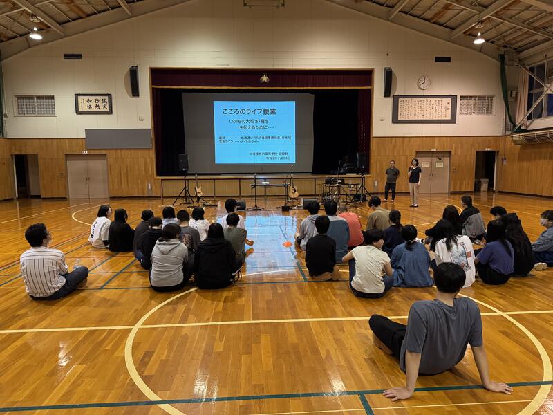 7月14日(月)に開催された「こころのライブ授業」は、北海道いのちの電話 杉本事務局長のお話と、札幌を拠点に活動するバンド『ナイトdeライト』さんによるライブ演奏を通して、「いのちの大切さ・尊さ」について深く考える貴重な機会となりました。