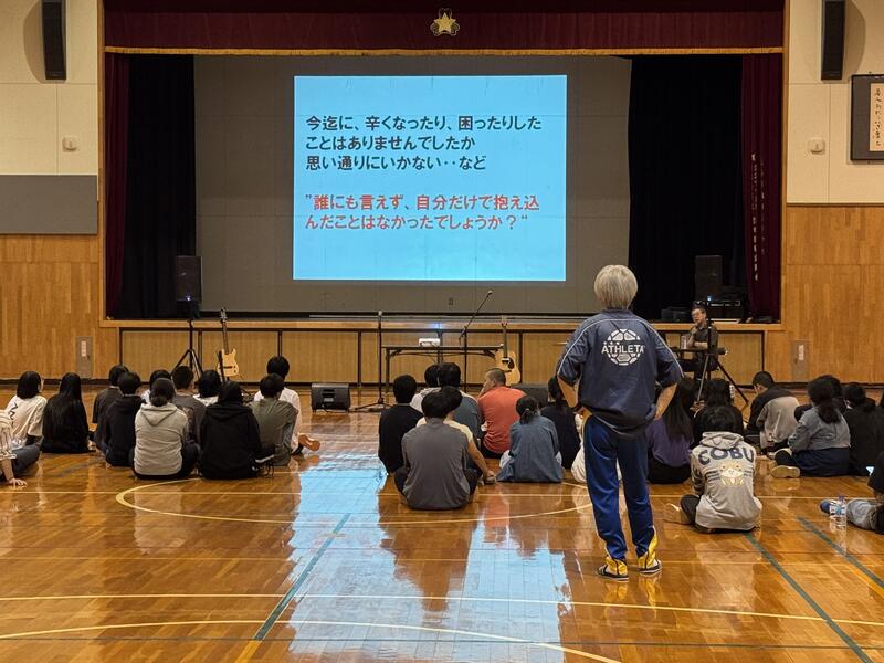 講演後には、札幌を拠点に活動するナイトdeライトさんによるライブ演奏が行われました。『君はそれで素晴らしい』は、不登校で苦しんでいる生徒さんを思い「死なないでほしい」という願いを込められた楽曲で、その重みのある歌詞が本校の生徒の心にも深く響いたようでした。生徒からは、「すごく意味のある歌詞でカッコいいなって思えた曲だった」「歌詞が心に残りました」「自分のこれまでにあったことが思い出されました」といった感想が寄せられ、音楽を通じていのちのメッセージが届けられたことが伺えました。これらの楽曲はYouTubeでも公開されていますので、ぜひ聴いてみてください。