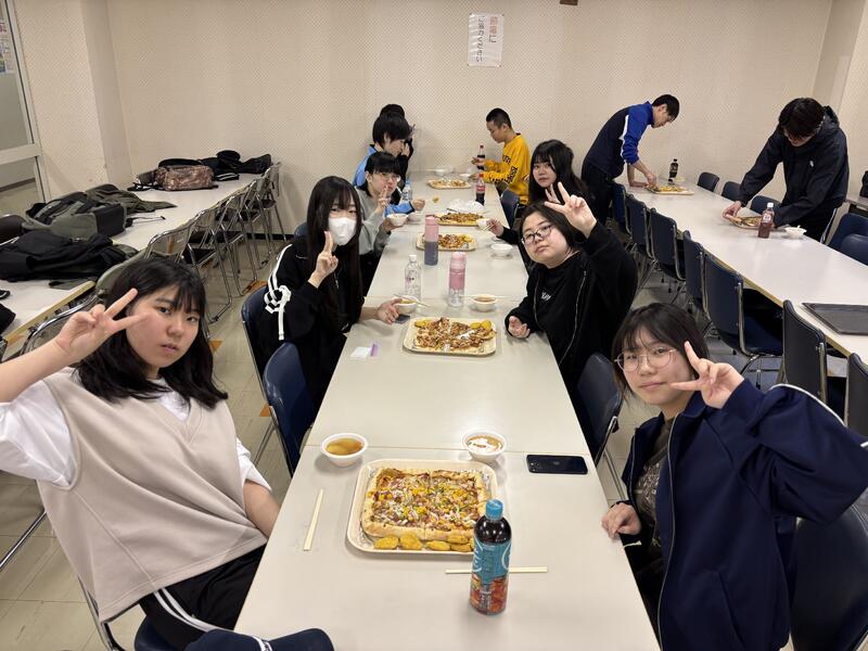 慣れない手つきで生地を伸ばしたり、みんなで協力して具材を切ったりする姿は、まさに青春の一コマ。笑顔と活気に満ちた調理室からは、香ばしいピザの香りが漂っていました。