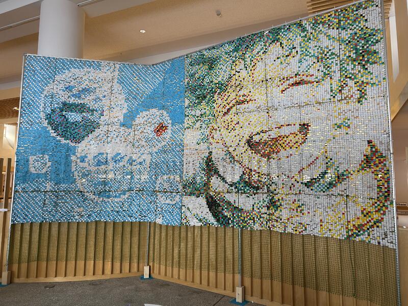 14日から「最北彩どり文化展」が市立図書館ではじまりました。今年も、定時制生徒全員で作成したモザイクアートが展示されています。会場のスペースの関係で、3作品のうち2作品の展示となりましたが、多くの方々にご覧いただければと思います。