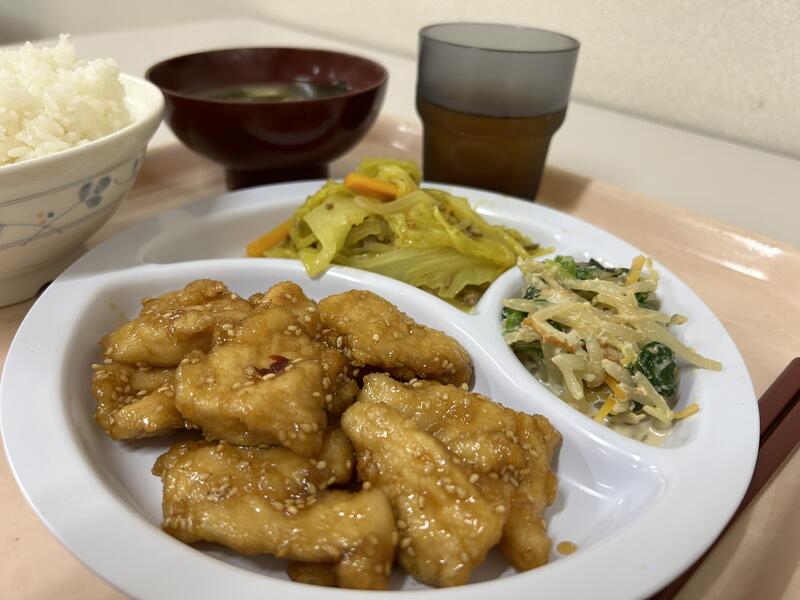 今日のメニューは、「ザンギ」、「じゃがいもの煮物」、「中華サラダ」、「かき玉スープ」でした。今日もおいしくいただきました。