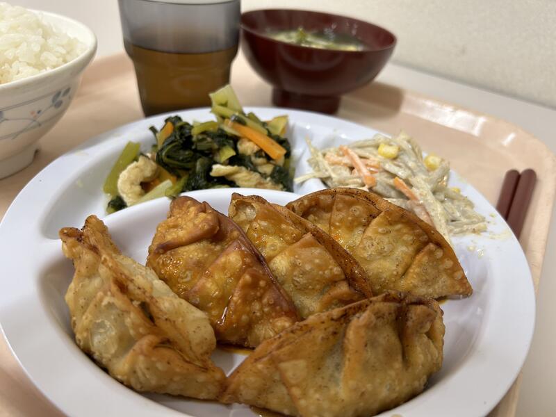 今日のメニューは、「揚げギョーザ」、「人参ツナ炒め」、小松菜・玉ネギ・油揚げの「味噌汁」でした。今日もおいしくいただきました。
