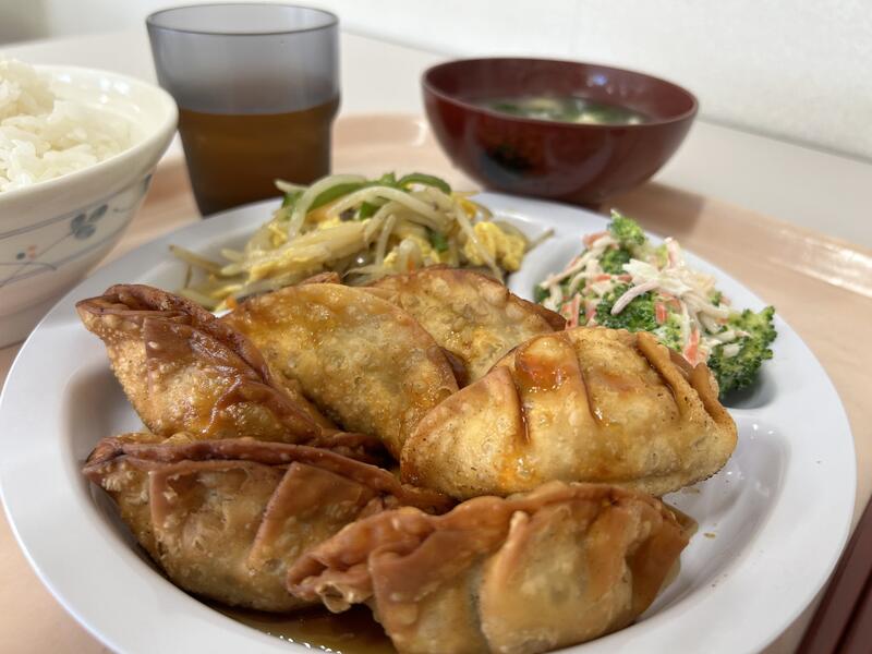 今日のメニューは、「水ギョウザ」、「鶏肉ピーマン炒め」、「白菜和え」、「チンゲン菜スープ」でした。今日もおいしくいただきました。