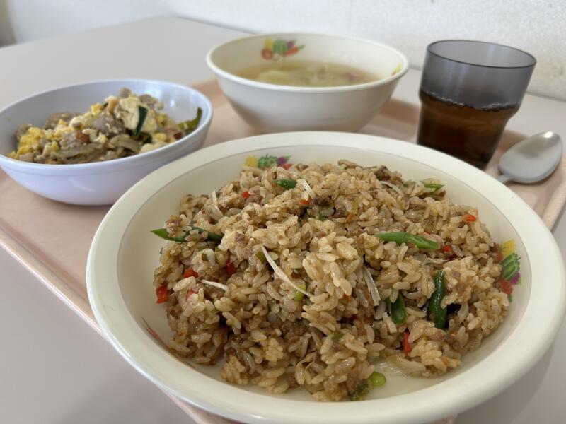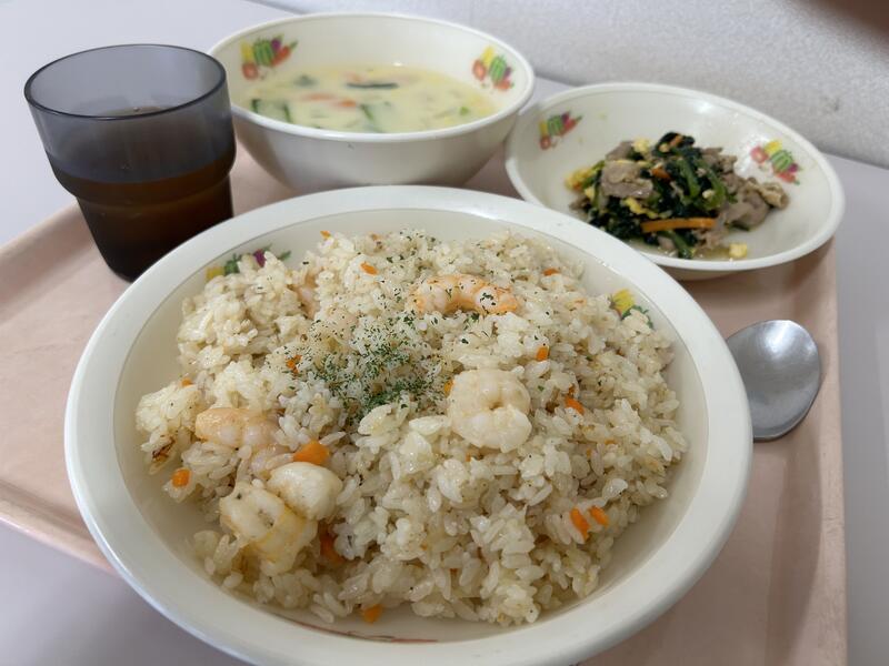 今日のメニューは、「焼豚チャーハン」、「キャベツとカニカマのサラダ」、「中華スープ」でした。今週もおいしくいただきました。