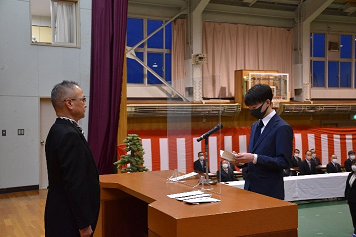 令和4年度 生徒会役員認証式・令和3年度 皆勤生徒表彰