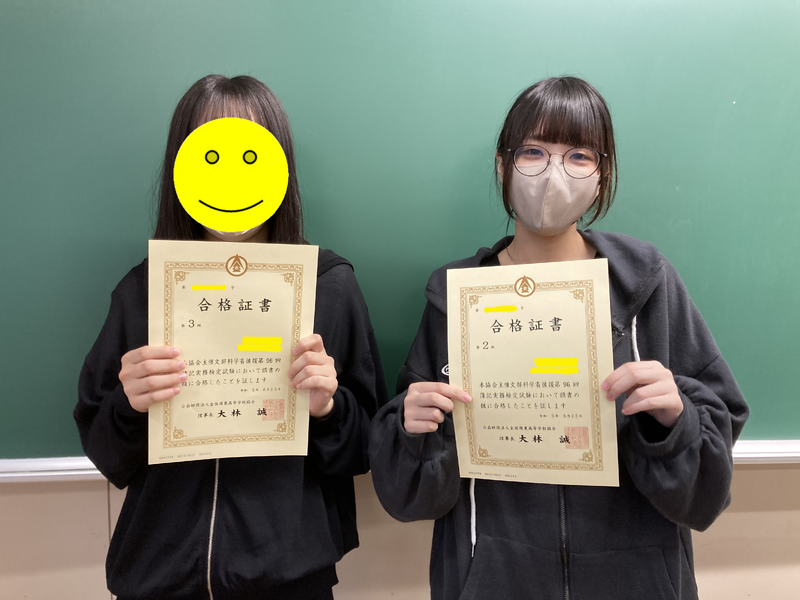 令和5年6月25日に実施された全国商業高等学校協会主催第96回簿記実務検定試験に定時制の生徒が2級1名、3級1名の合格を果たしました。